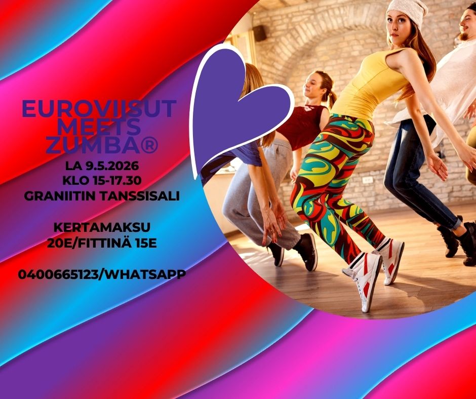 🇫🇮 Euroviisut ja Zumba sopivat täydellisesti yhteen. La 9.5 klo 15-17.30 2.5 h yhtä ilotulitusta biisi toisensa perään. Tätä ei kannata jättää väliin. Pue päällesi jotain teemaan sopivaa, ota paljon juomista, vähän evästä ja erityisesti iloinen mieli. Ohjaajia useampi paikan päällä. Kannattaa lähteä kauempaakin. Paikkana Graniitin tanssisali jossa iso peili ja upea äänentoisto. Kertamaksu 20e, Fittinä-kortin omaaville 15e. Maksu; liikuntaedut, käteinen, mobilepay 0400665123 . Tule mukaan BAILAAMAAN JA FIILISTELEMÄÄN SUOMEA VOITTOON seuraavana viikonloppuna!